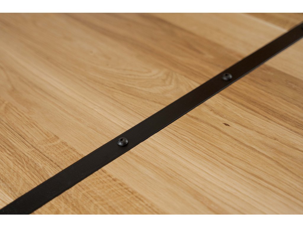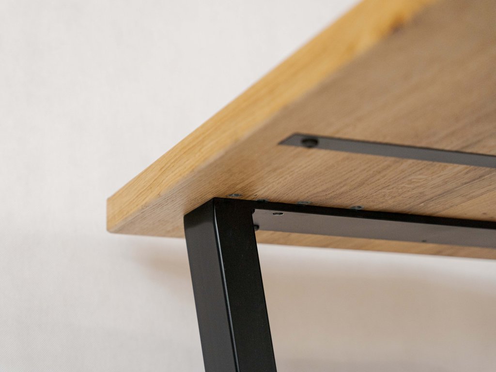 Masivní dubový jídelní stůl Triton s pevnou kovovou konstrukcí, ručně vyrobený s důrazem na detail a kvalitu. Spojení přírodního dřeva a kovu vytváří design vhodný do moderních i rustikálních interiérů.
